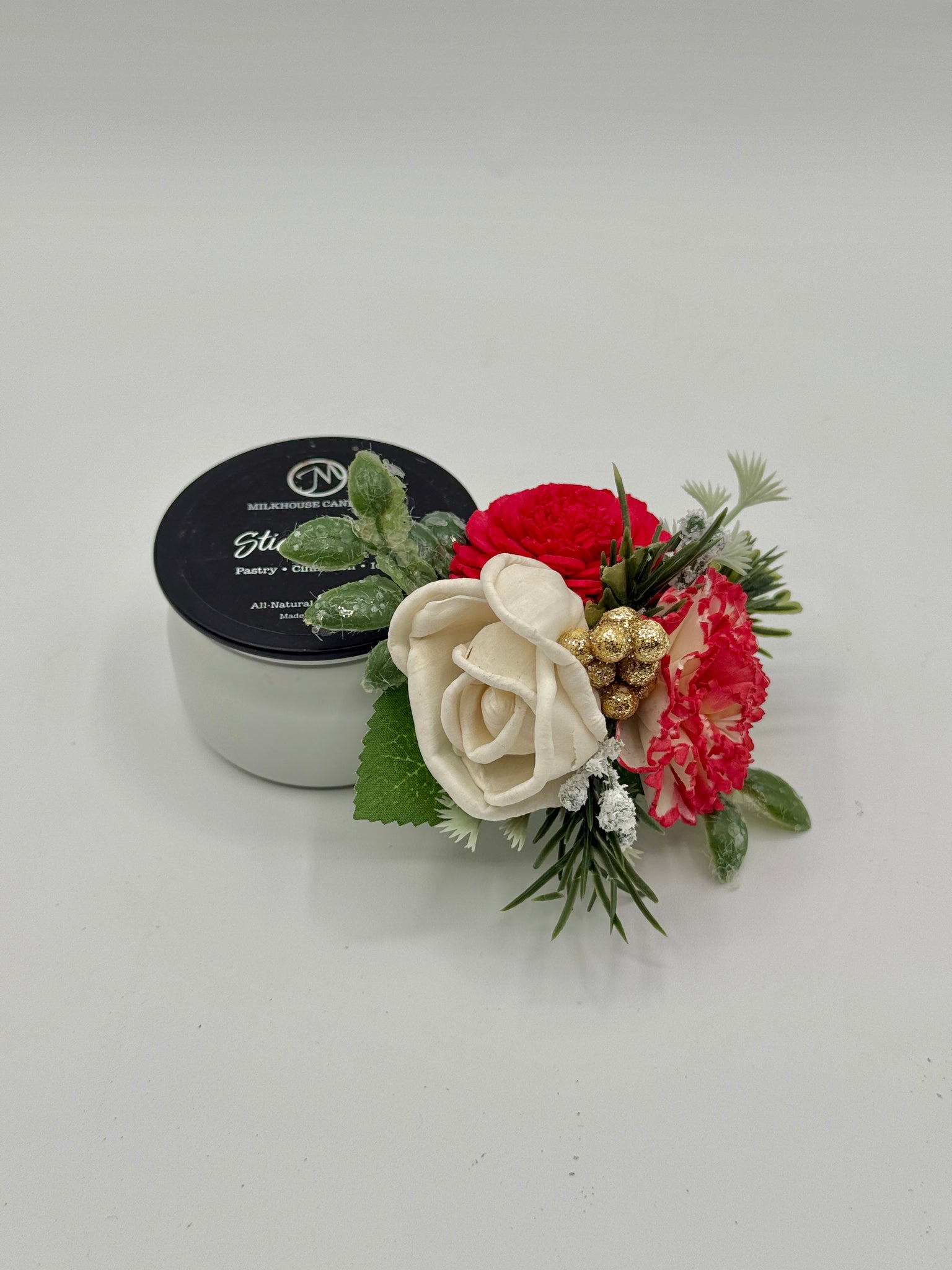 Christmas Carnation Mini Bouquet Magnetic Topper & Candle