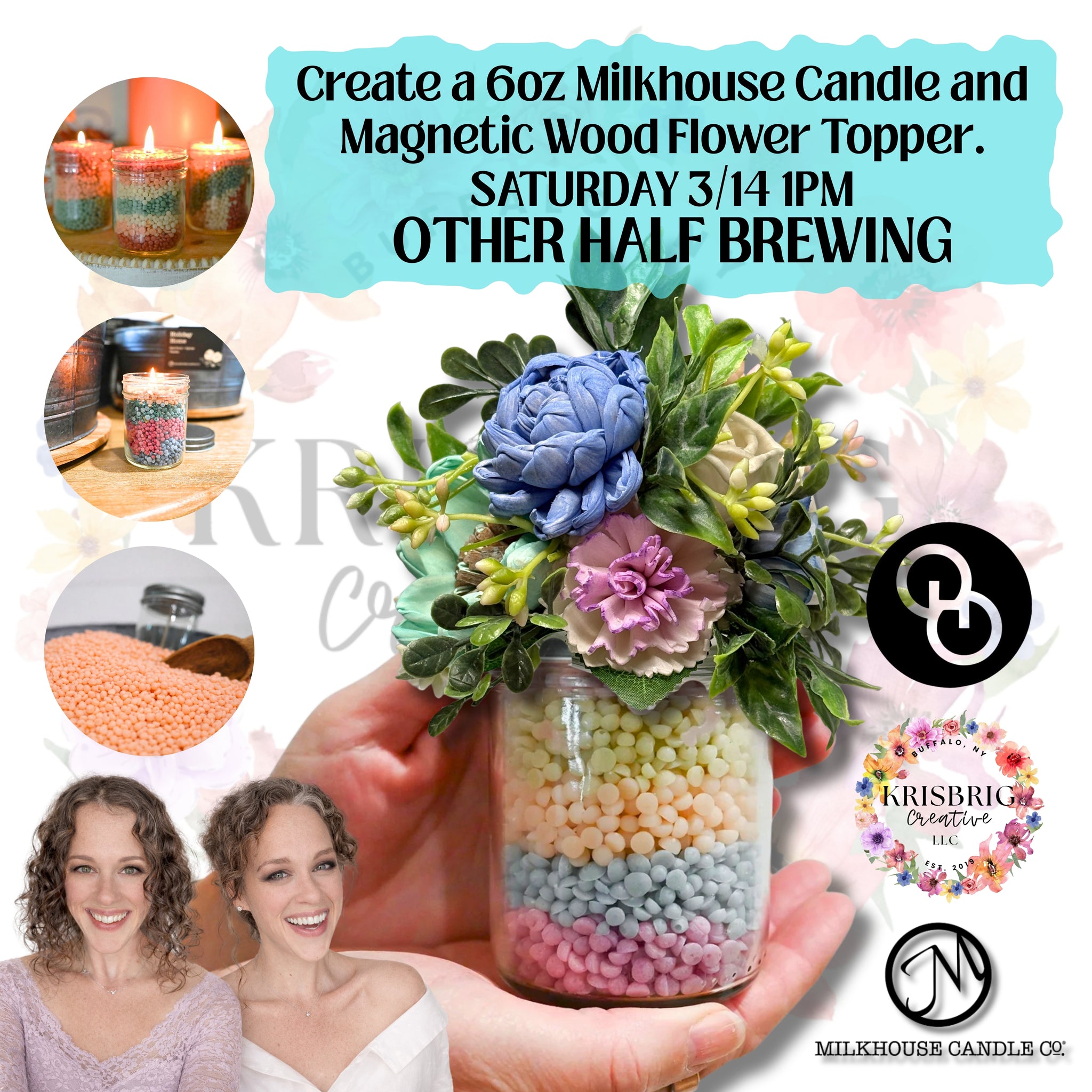 Join KrisBrig Creative for an elevated, hands-on workshop experience featuring authentic Milkhouse Candle Company® wax beads, crafted from 100% American-grown soy. You’ll create your own 6oz candle using premium layered wax beads in a scent that speaks to you — clean, beautifully fragranced, and sustainably made.